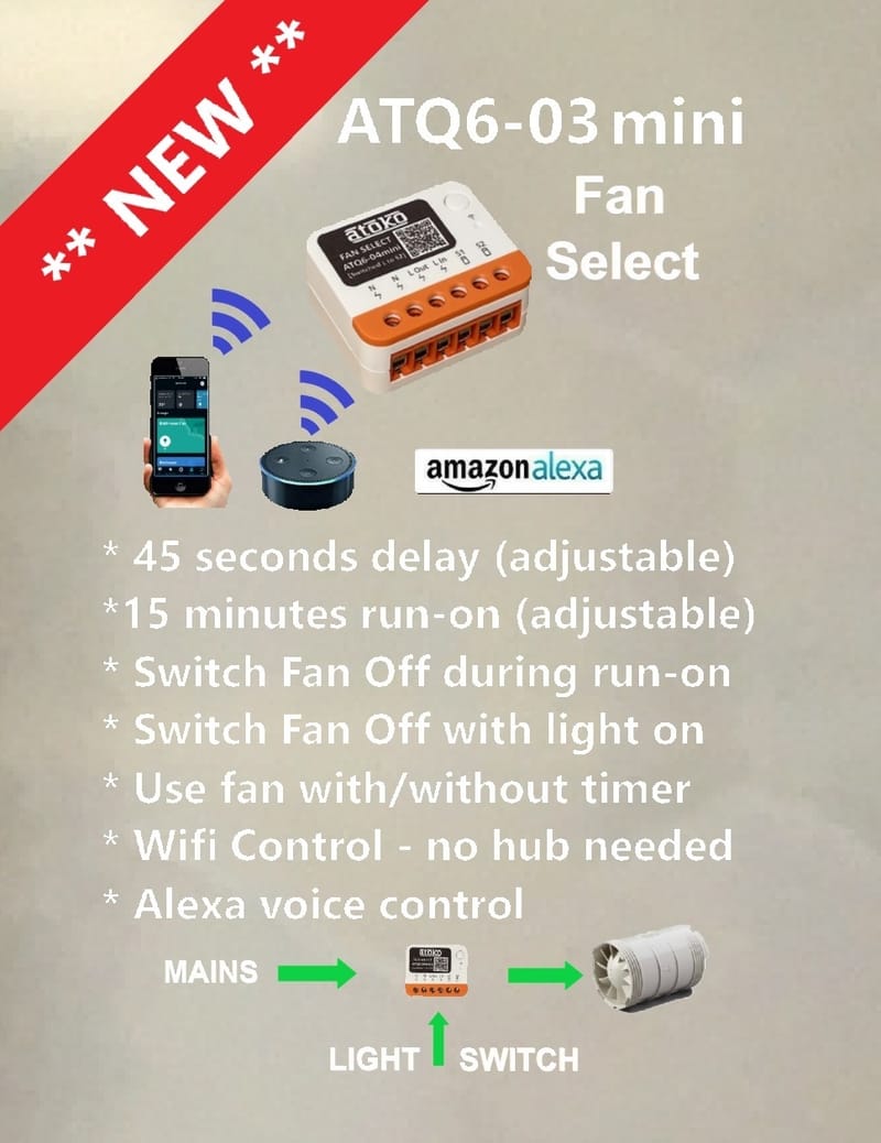 Save money on a new installation as the fan doesn't need to have a built-in run-on timer - the Atoko Fan Select does all the work.